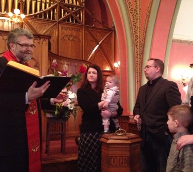 Previous Image Next Image Child Dedication at Pullman Memorial Universalist Church Child Dedication. Benjamin Orr, between his godparents, is about to be blessed. Like Loading...